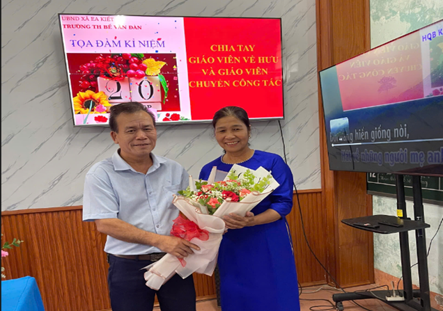 Phần xúc động nhất của chương trình là lễ chia tay giáo viên nghỉ hưu và giáo viên chuyển công tác. Nhà trường đã gửi tặng những bó hoa tươi thắm thay cho lời cảm ơn chân thành, lời chúc sức khỏe và hạnh phúc đến cô Trần Thị Lý (nhân viên kế toán chuyển công tác) và cô Nguyễn Thị Loan (GV về hưu), những người đã có nhiều năm gắn bó, cống hiến hết mình cho mái trường Bế Văn Đàn thân yêu.
