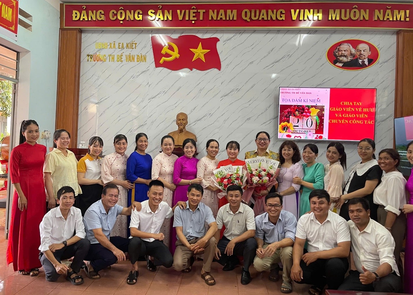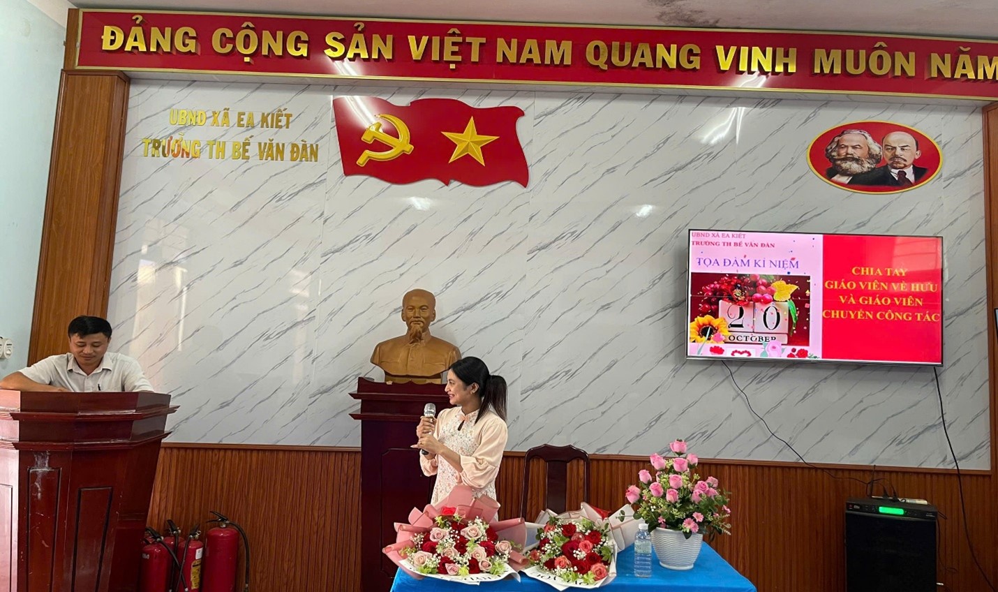 Hòa trong không khí phấn khởi của cả nước hướng về Ngày Phụ nữ Việt Nam 20/10, chiều ngày 20 tháng 10 năm 2025, Trường Tiểu học Bế Văn Đàn – xã Ea Kiết đã long trọng tổ chức buổi tọa đàm kỷ niệm Ngày Phụ nữ Việt Nam 20/10, kết hợp chia tay giáo viên nghỉ hưu và giáo viên chuyển công tác.